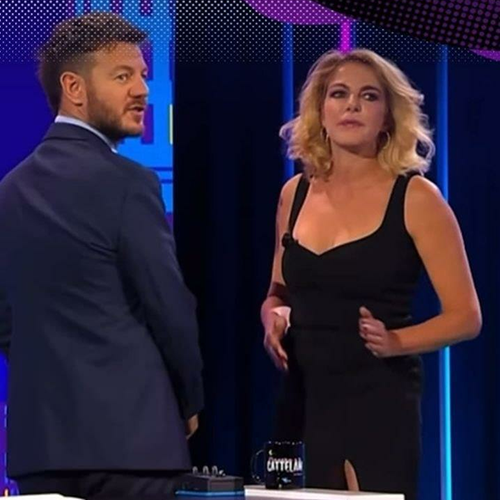 Claudia wears a Rallegrati long black dress at the Tv Show: Stasera C’è Cattelan
