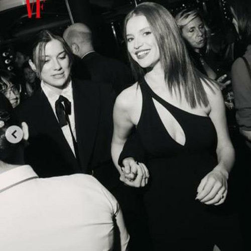 Ludovica wears a Rallegrati long black dress with a very sexy front cut at Vanity Fair-Costa Cruise Party in Genova