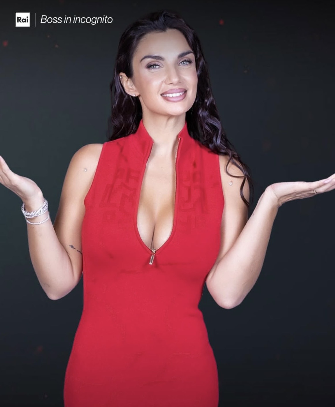 Rebecca wears a Rallegrati white long dress during Il Grande Fratello Tv Show