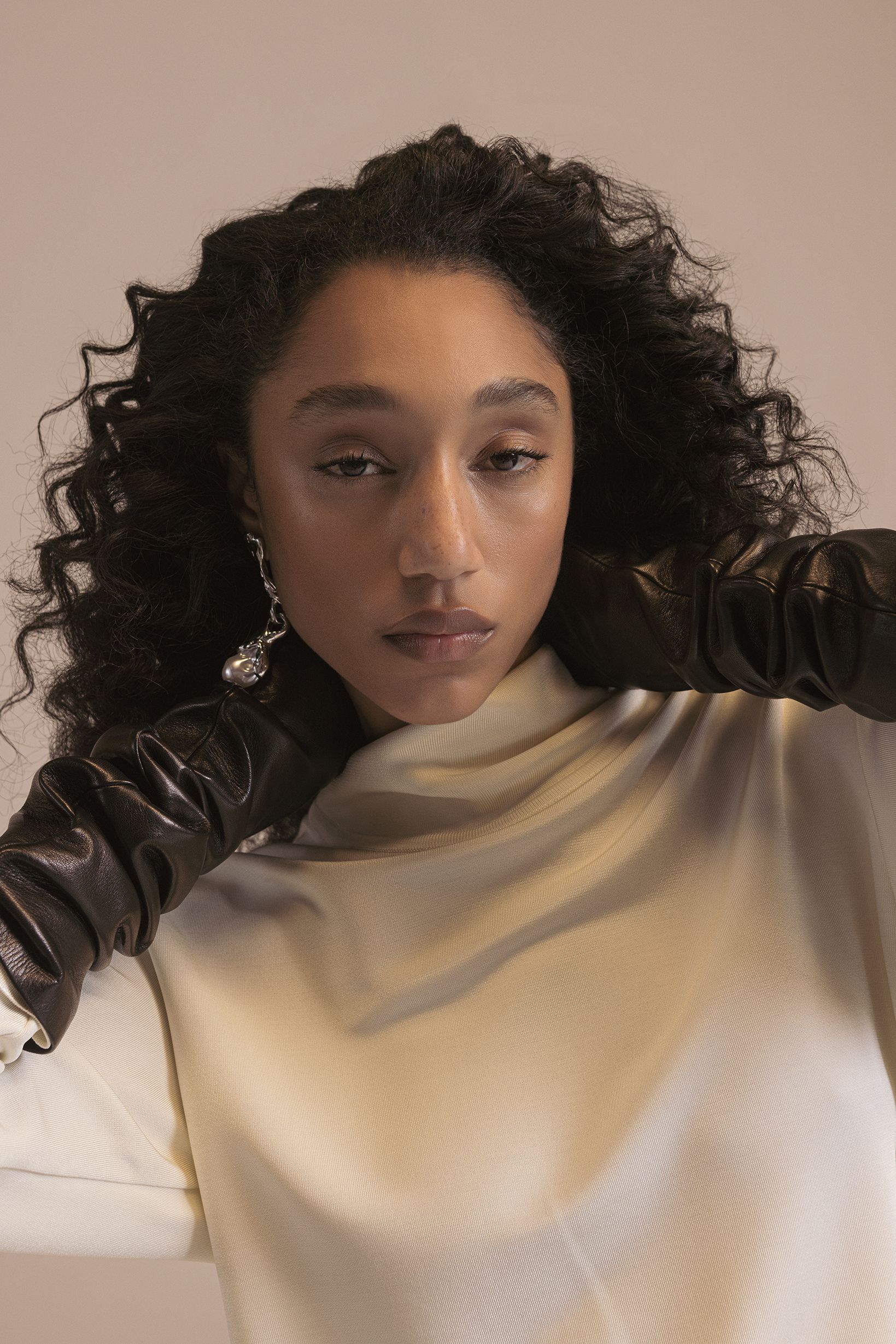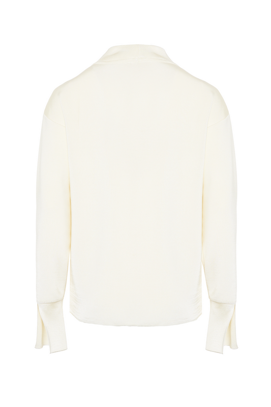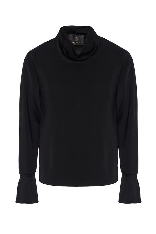 Blusa fluida in morbida maglia di viscosa stretch indeformabile, effetto seta con maxi collo. Vestibilità standard.