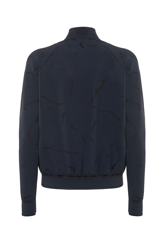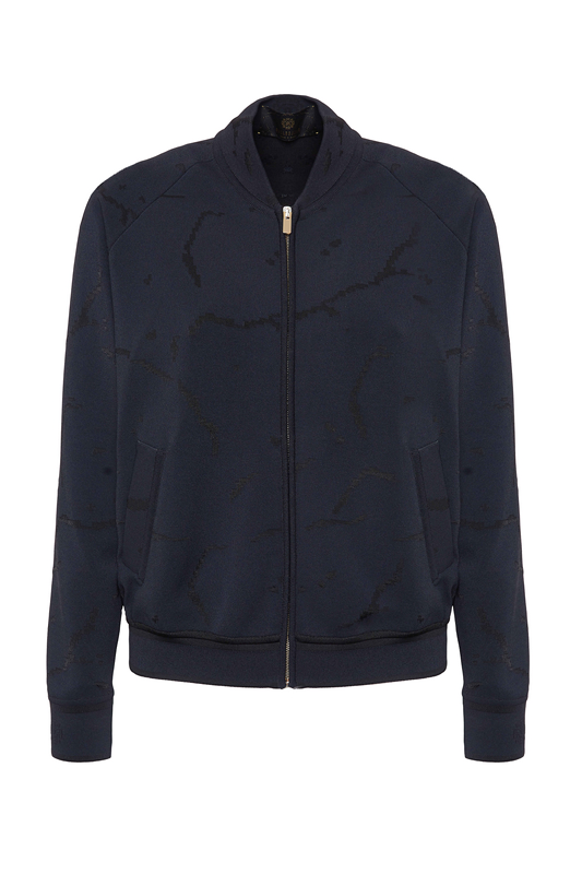 Bomber in maglia di pregiata viscosa stretch indeformabile, fantasia tono su tono Cracklè. Vestibilità standard.