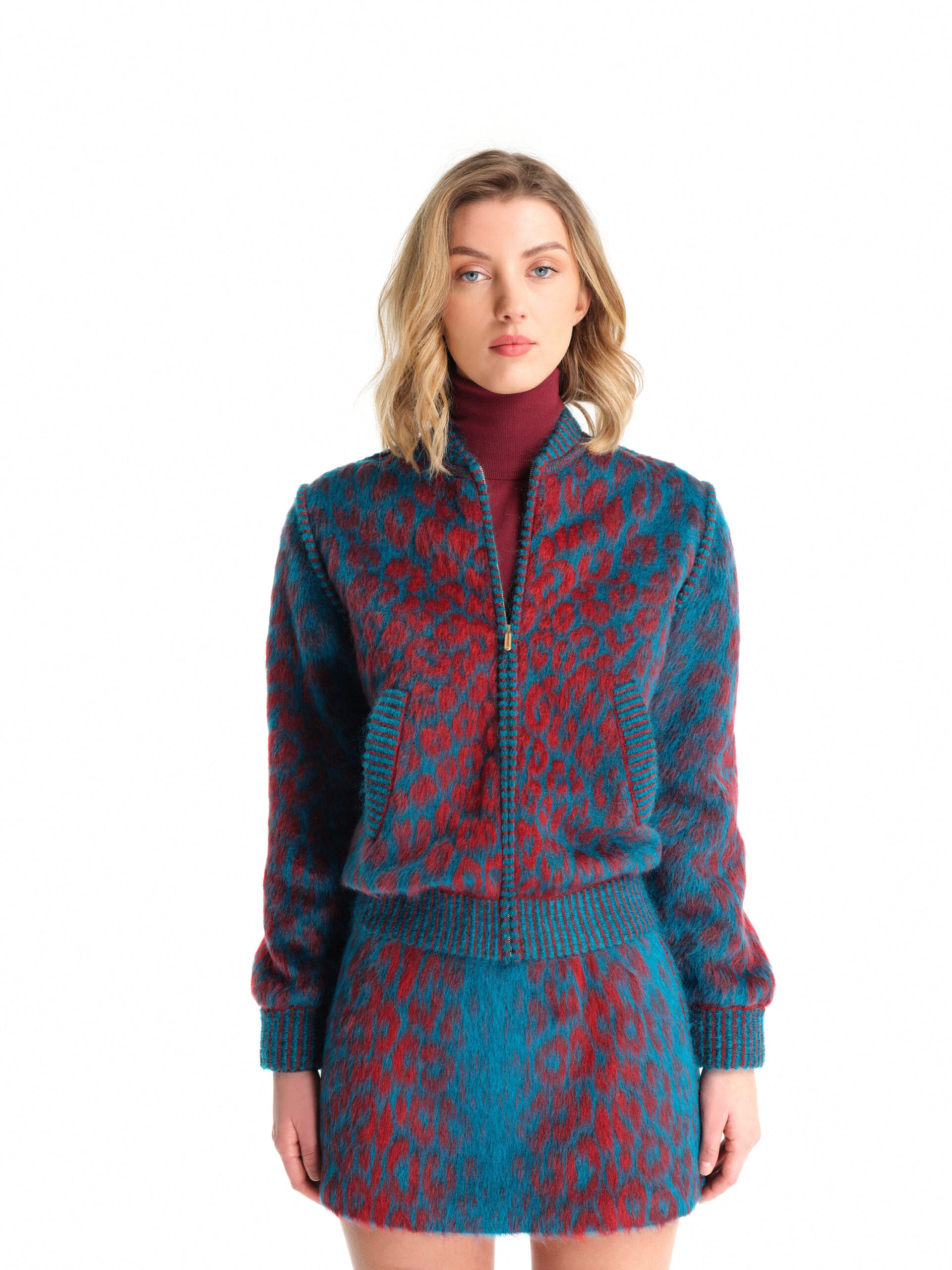 Minigonna dal design vintage in Mohair e Lana Merinos dalla texture effetto pelliccia stretch ed indeformabile. Vita elasticizzata con vestibilità standard