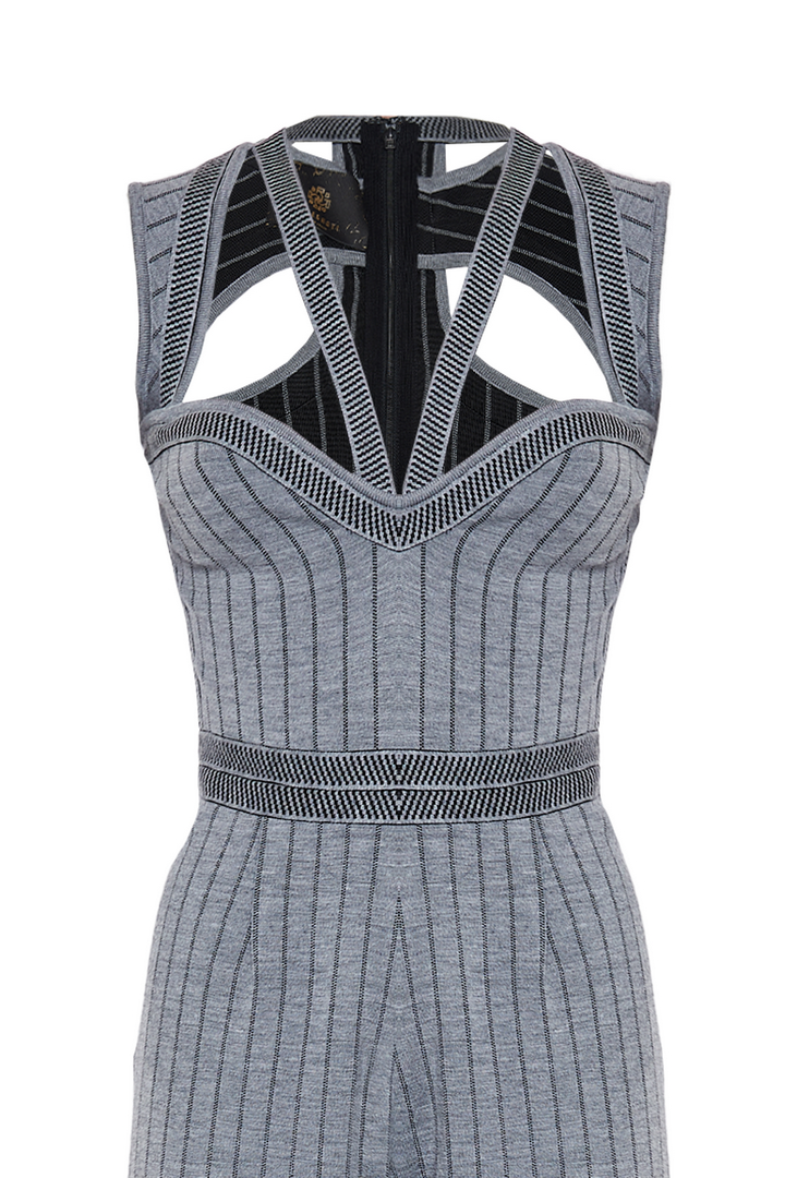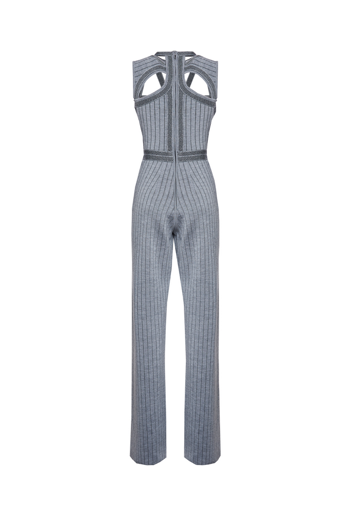 Jumpsuit in maglia stretch indeformabile con nastri jacquard e corsetto cut-out.