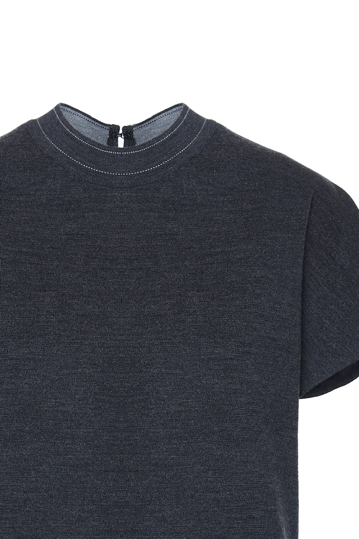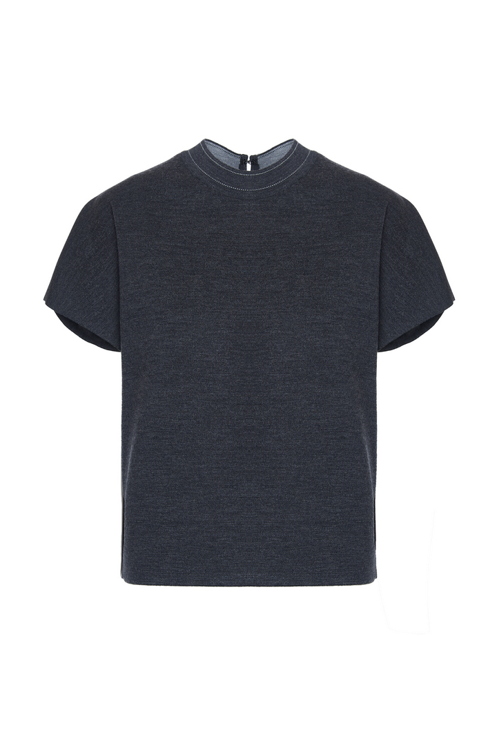 Smanicato over girocollo in maglia double stretch indeformabile in lana merinos.