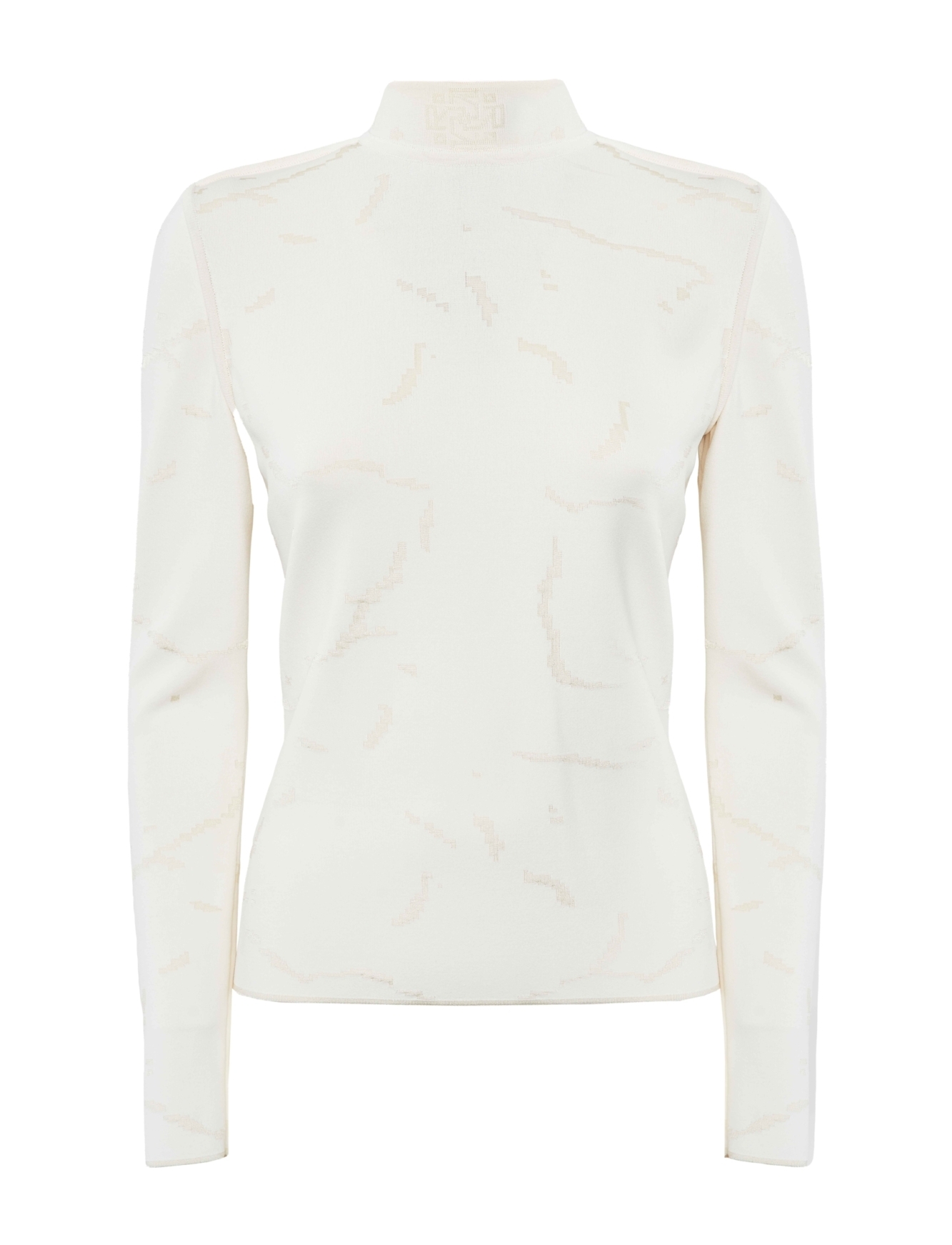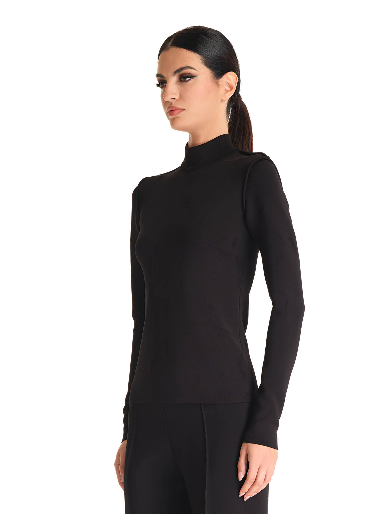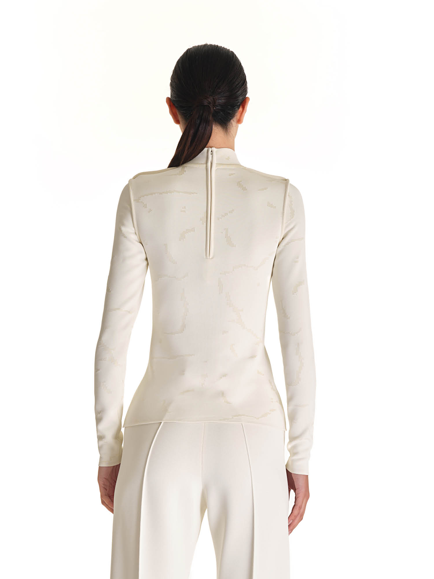 Top manica lunga e collo alto in morbida maglia di Viscosa Stretch indeformabile, fantasia jacquard tono su tono cracklè Rallegrati.