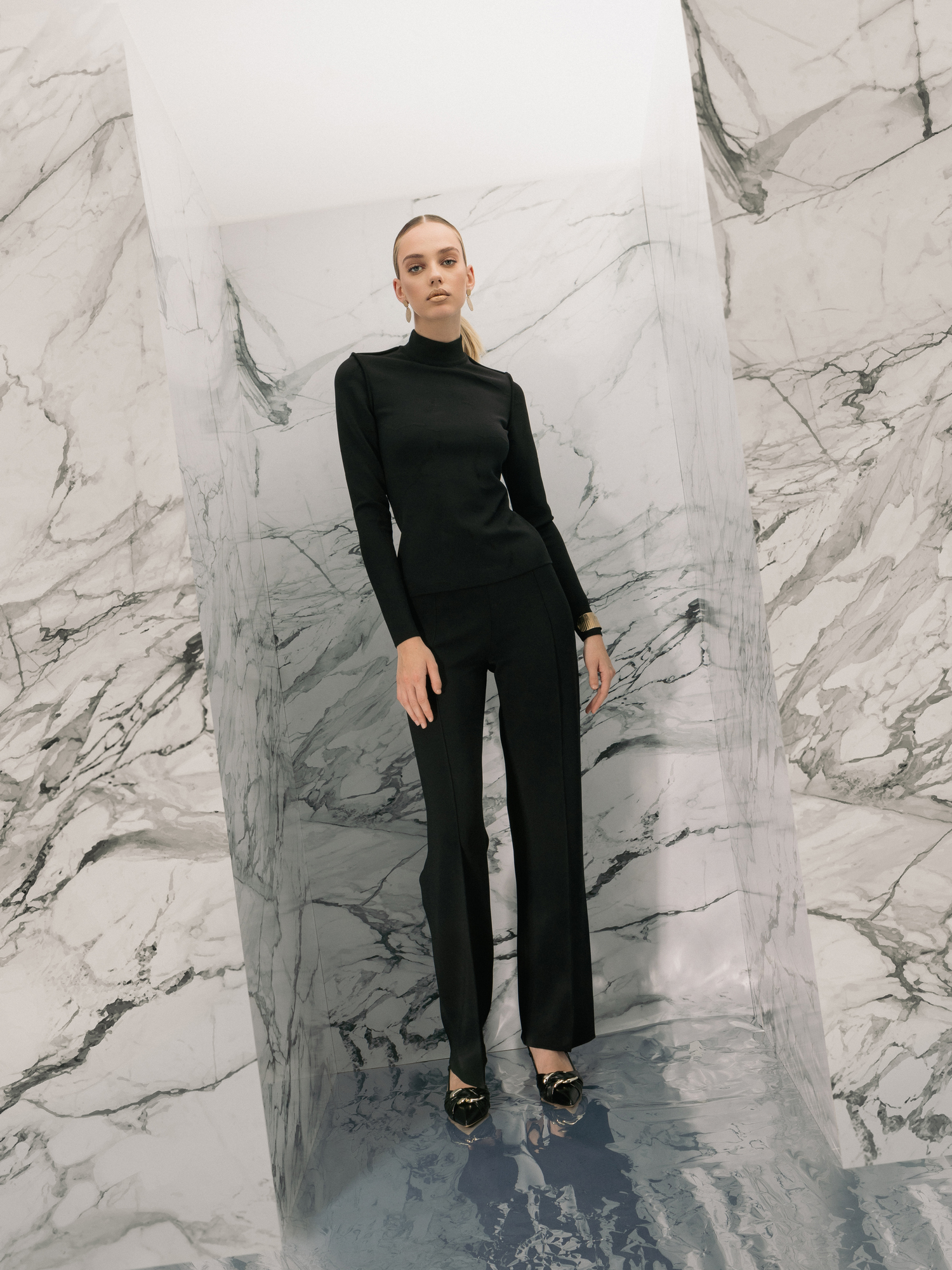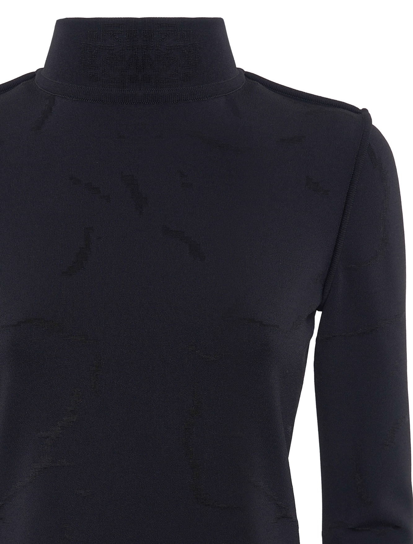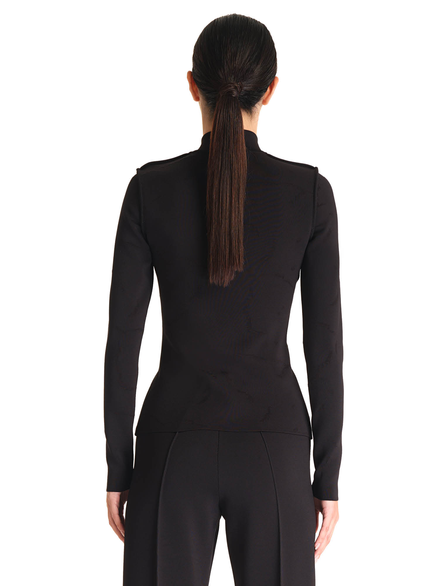 Top manica lunga e collo alto in morbida maglia di Viscosa Stretch indeformabile, fantasia jacquard tono su tono cracklè Rallegrati.