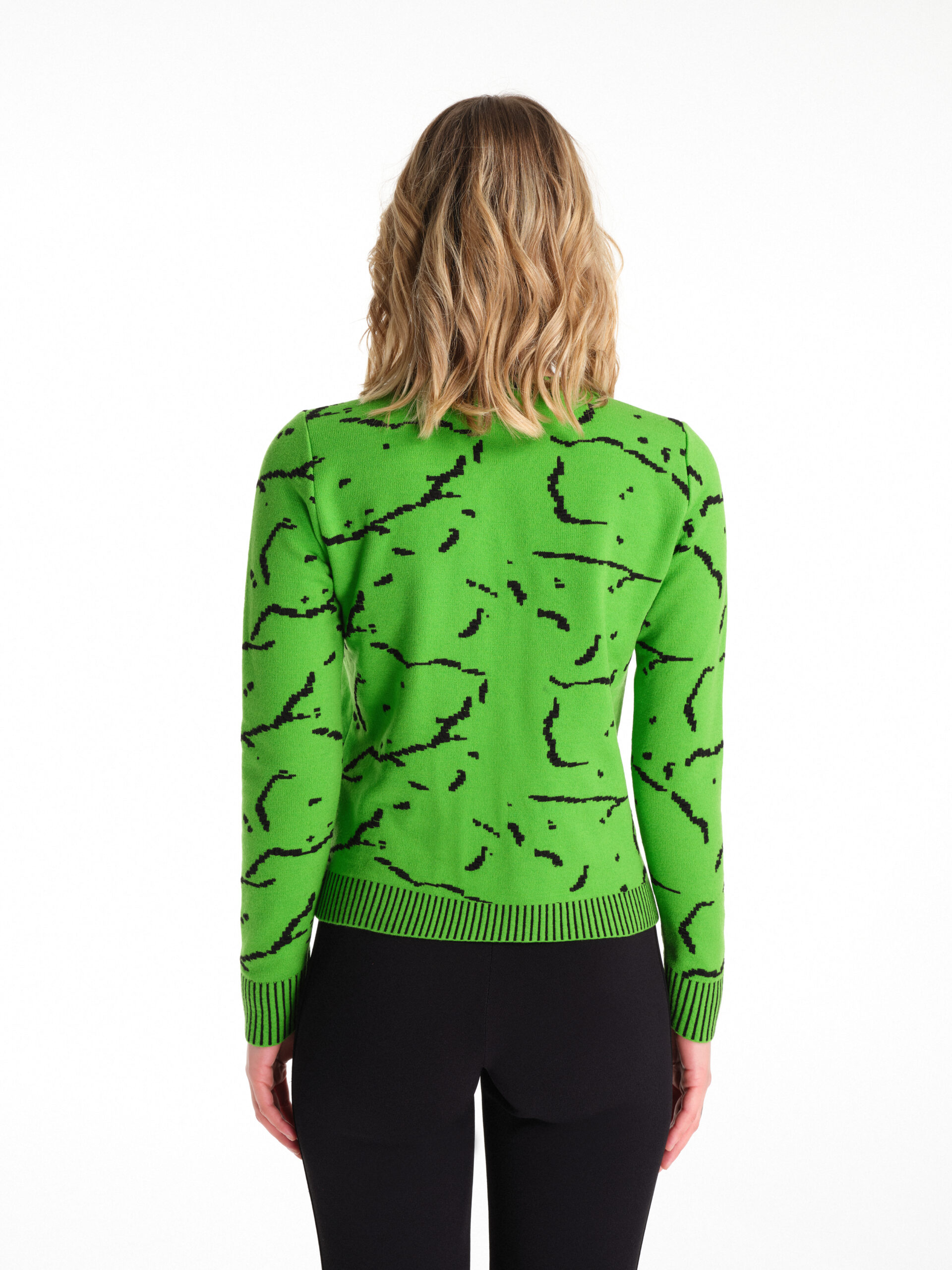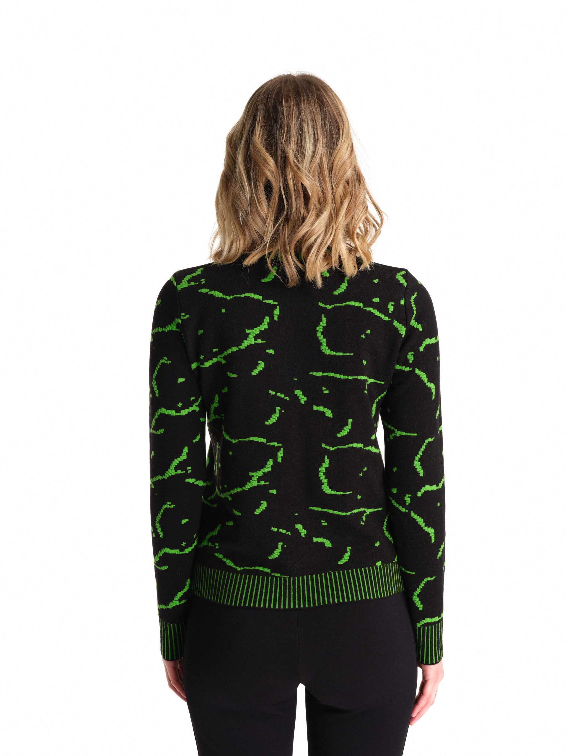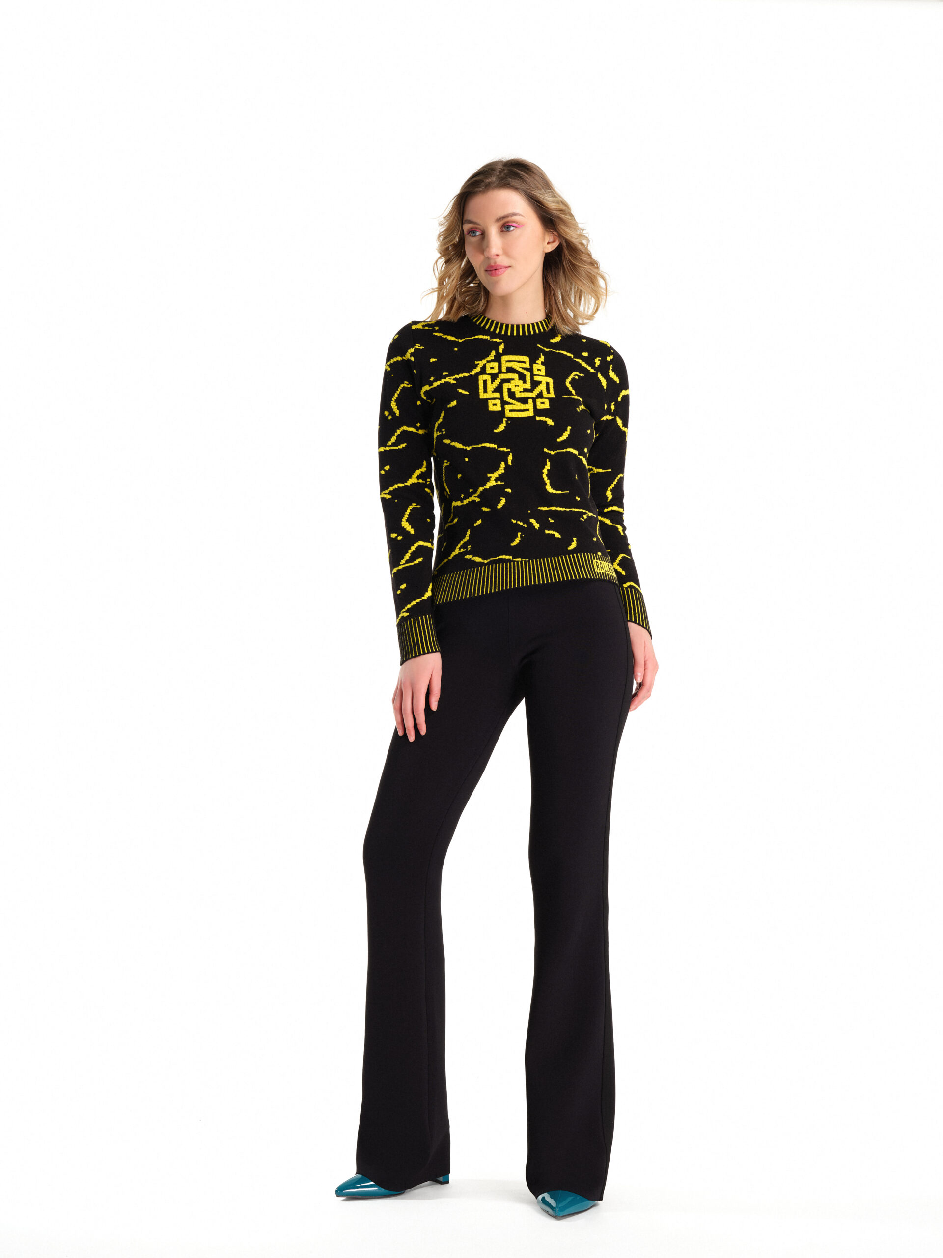 Pullover in lana Merinos stretch indeformabile in fantasia Cracklè Rallegrati, logo frontale e coste bicolor in tre versioni/colori.